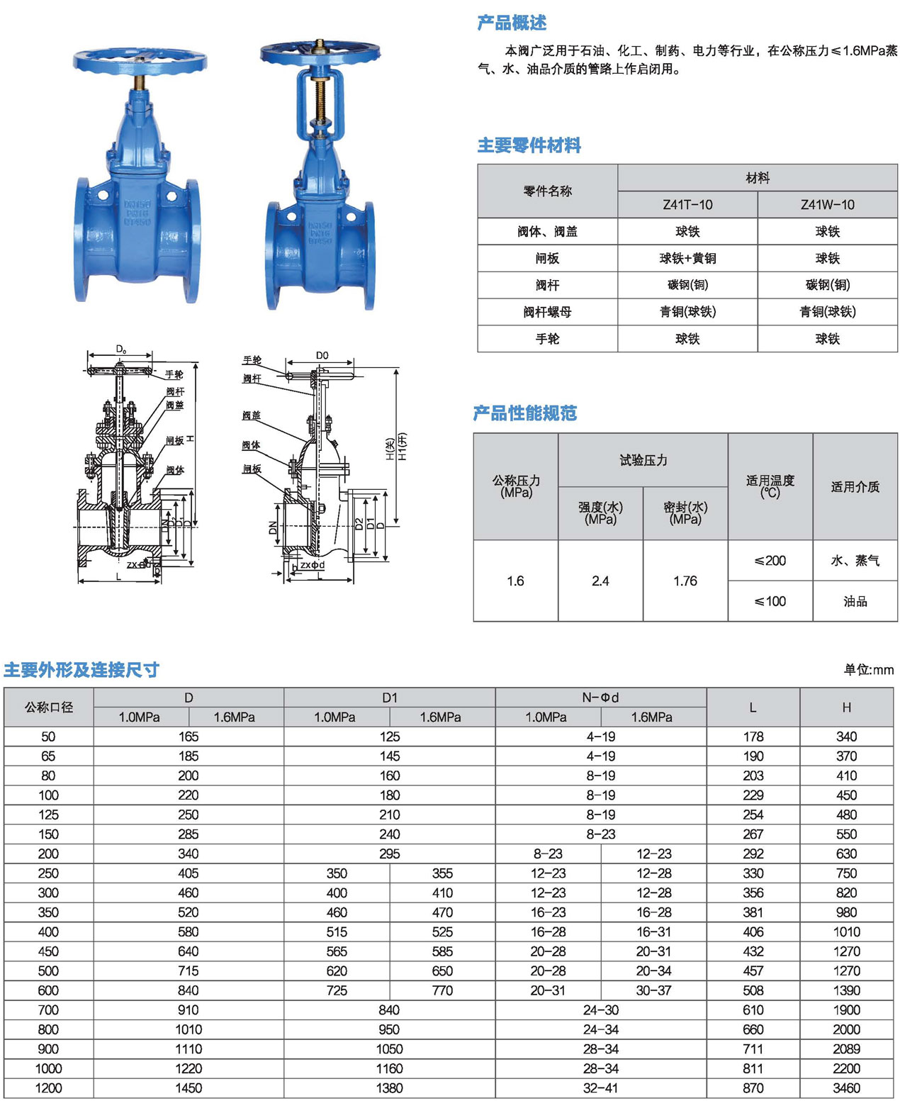 口徑:DN50~DN1200mm