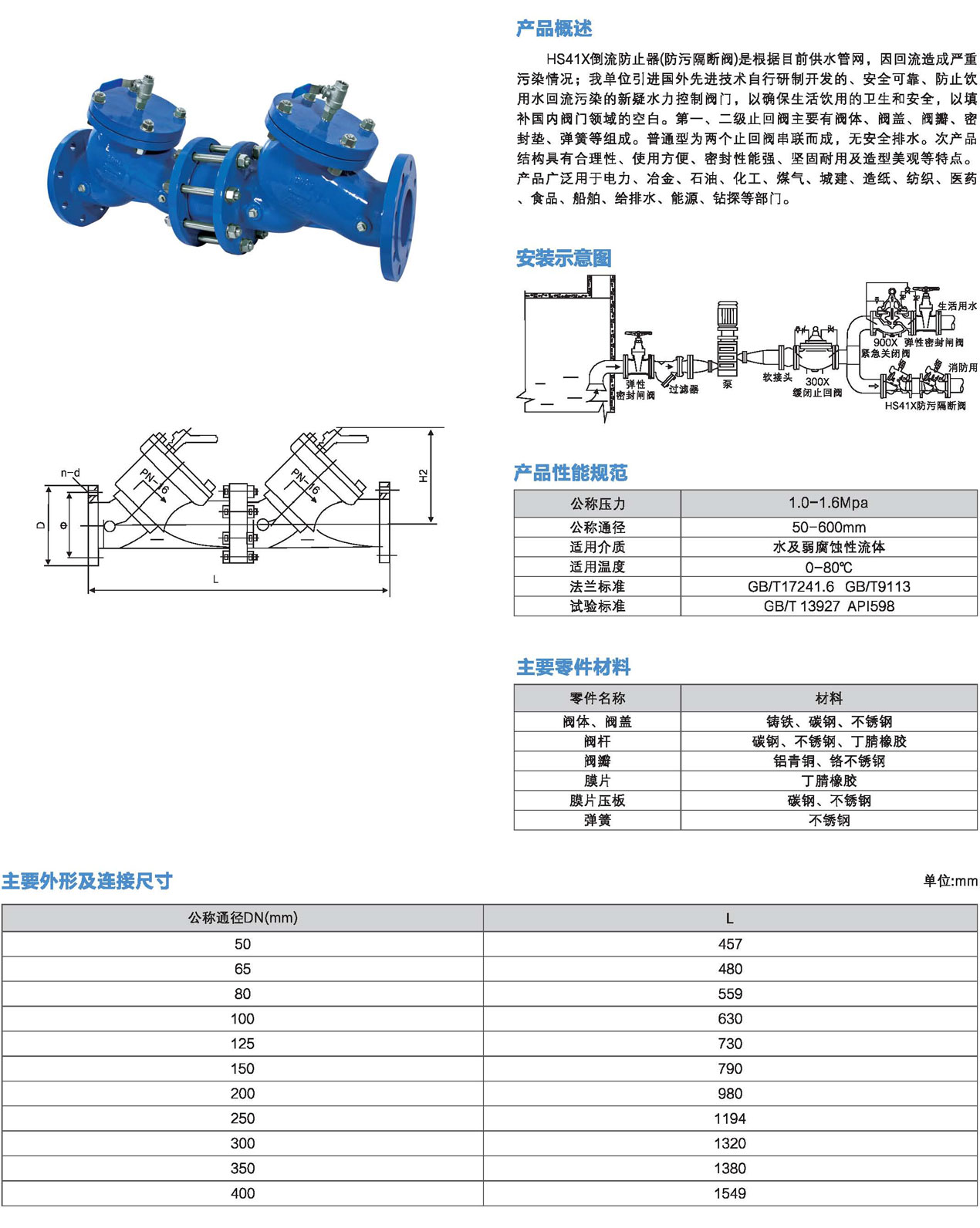 口徑:DN50~DN400mm
